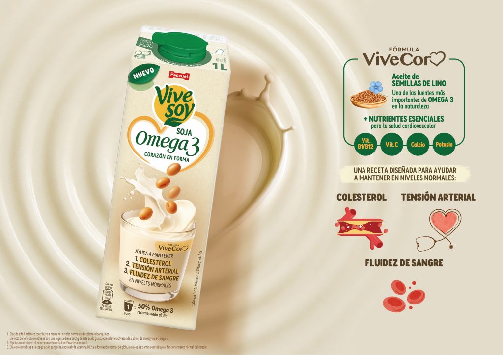 En un contexto donde, según la última Encuesta Nacional de Salud en España (1), el 18% de la población española tiene el colesterol alto, cifras que ascienden hasta el 50%, según el estudio ENRICA (2), y siendo el segundo factor de riesgo de enfermedades cardiovasculares; Pascual vuelve a innovar en el mercado de las bebidas vegetales con Vivesoy soja Omega 3, que está diseñada para personas adultas que quieren cuidar su salud cardiovascular y que pueden integrarla dentro de una alimentación variada y equilibrada.